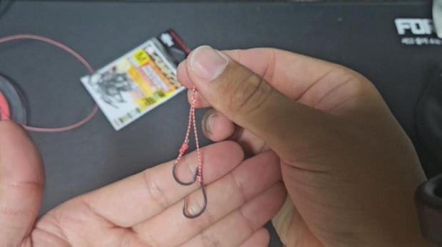 라인 잘라주고 훅 2개 꺼내 줍니다.