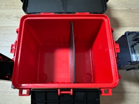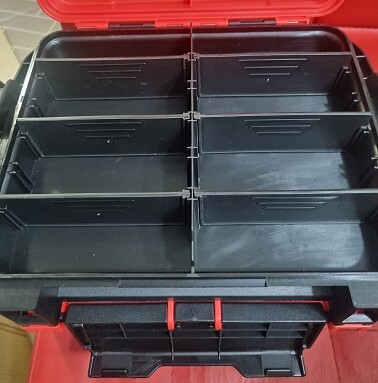 역시 2단 분리 칸막이가 있어 소품과 장비로 구분하여 사용하기 좋습니다. 저 같은 경우 촬영 장비가 많이 있어서 한 쪽은 보조배터리 한쪽은 촬영 카메라 장비를 보관하여 사용합니다.